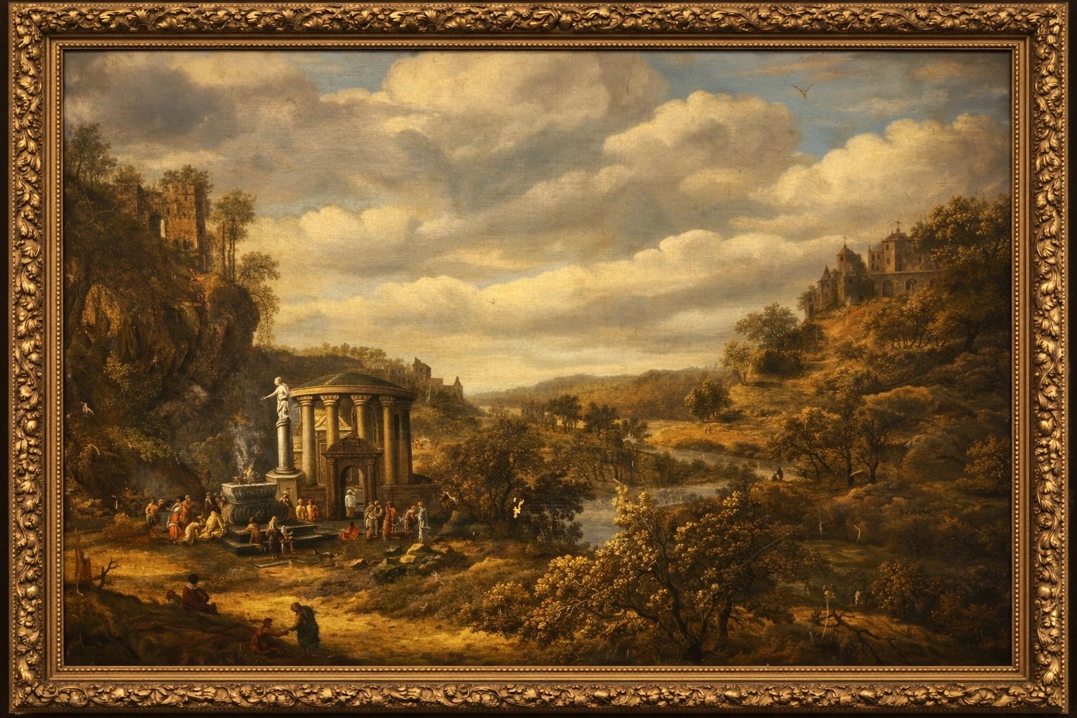 Here we show the painting in detail. We are looking for help to identify with certainty the painter and potentially find a good home for it to be restored and returned to a museum to regain its rightful place in the collected works of Claude Lorrain.
